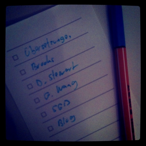 1. Die Liste. Inzwischen fehlt nur noch das Häkchen vor SGD, was heißt, ich muss noch was für die Uni machen. Oder zumindest eine weitere Liste mit einem Lernplan